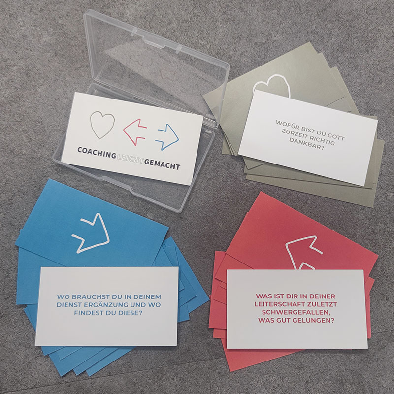 Menschen im Coaching bzw. Mentoring zu begleiten, ist enorm hilfreich. Durch gezielte Fragen ermöglichen wir es unserem Gegenüber, sich gesehen zu fühlen, seine Situation zu reflektieren und sich persönlich weiterzuentwickeln. Doch wie beginnt man ein solches Gespräch? Über welche Themen kann man sich austauschen? Und was ist wirklich hilfreich für die andere Person? Coaching-leicht-gemacht bietet eine Auswahl an kraftvollen Fragen. Wähle aus drei Kategorien jeweils ein bis zwei Karten aus. Damit kannst du das Gespräch einfach vorbereiten und dein Gegenüber wird sicher ermutigt.